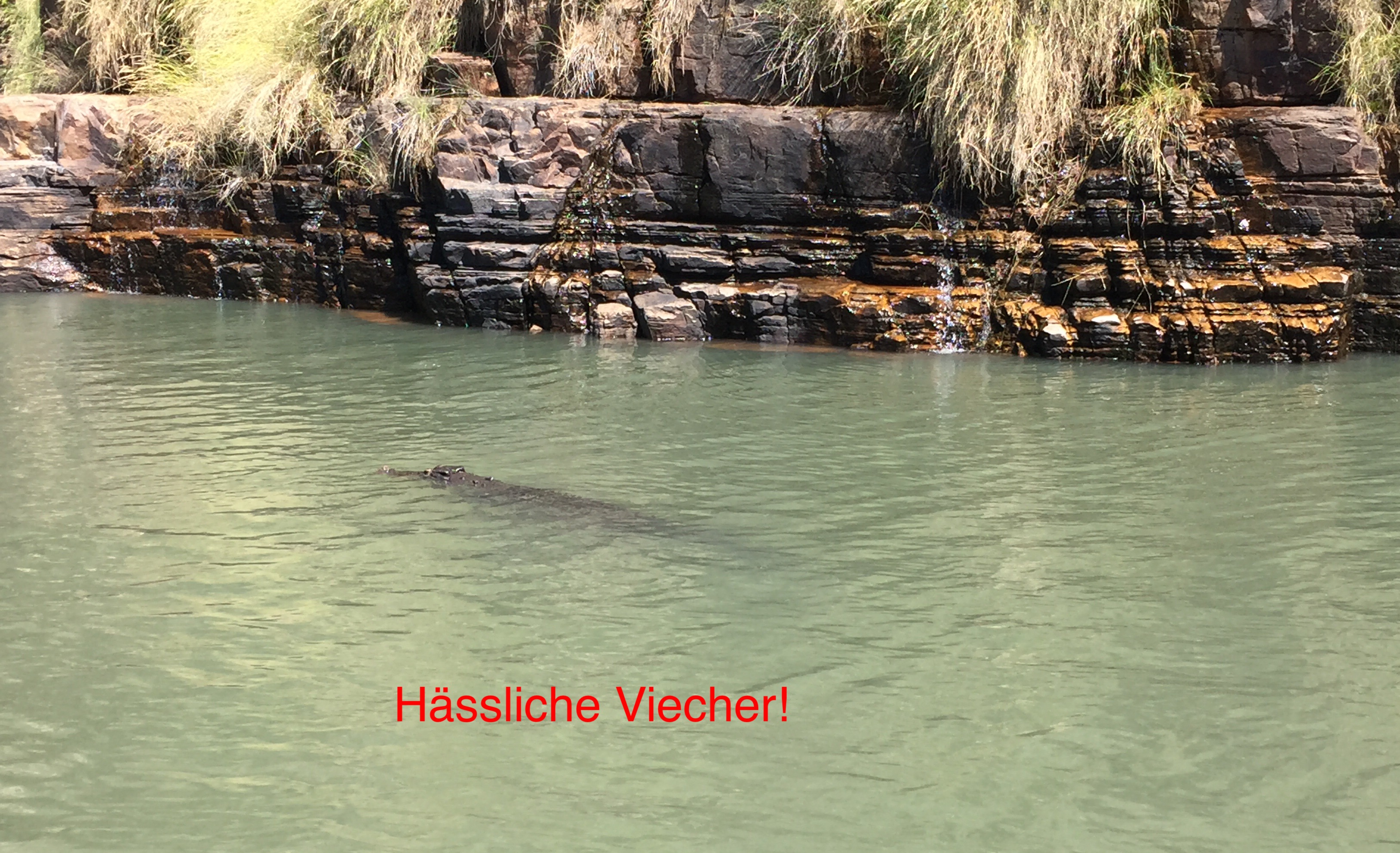 Zwischen Broome und Darwin haben wir ausser den Wandmalereien der Indigenes nichts von Menschenhand Geschaffenes gesehen. Dafür fast jeden Tag Wale, gelegentlich Haifische und auch Krokodile. Die Kimberleys sind deshalb für Badeferien gänzlich ungeeignet. Der Lieblingsspruch unserer Guide war nicht umsonst: auch wenn ihr die Krokodile nicht seht, sie sehen euch! Na super!