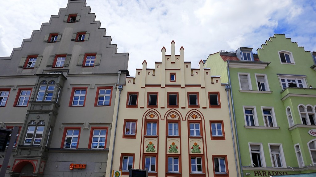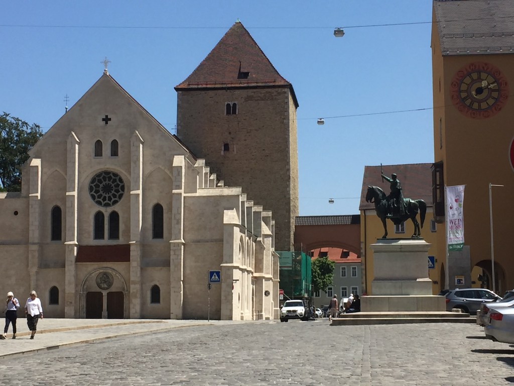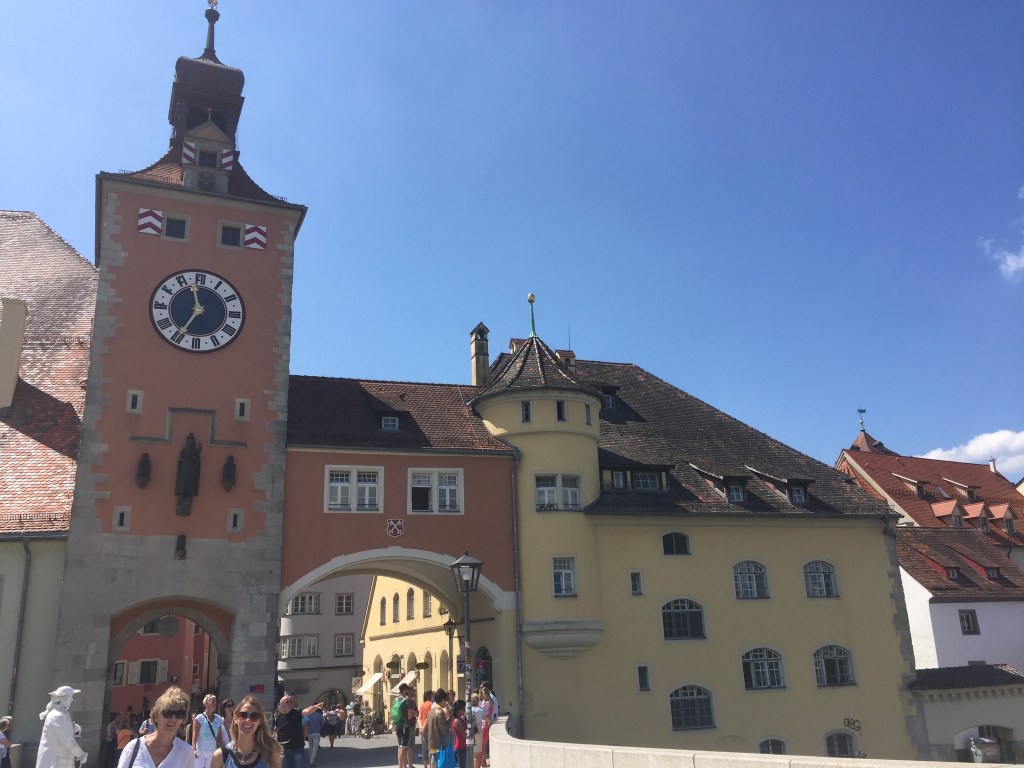 Die bayerische Stadt Regensburg liegt auch an der Donau und ist für ihr gut erhaltenes mittelalterliches Zentrum bekannt. Eines ihrer Wahrzeichen ist die Steinerne Brücke aus dem 12. Jh. Sie ist 310 m lang, hat 16 Bögen und wurde gerade fertig saniert.