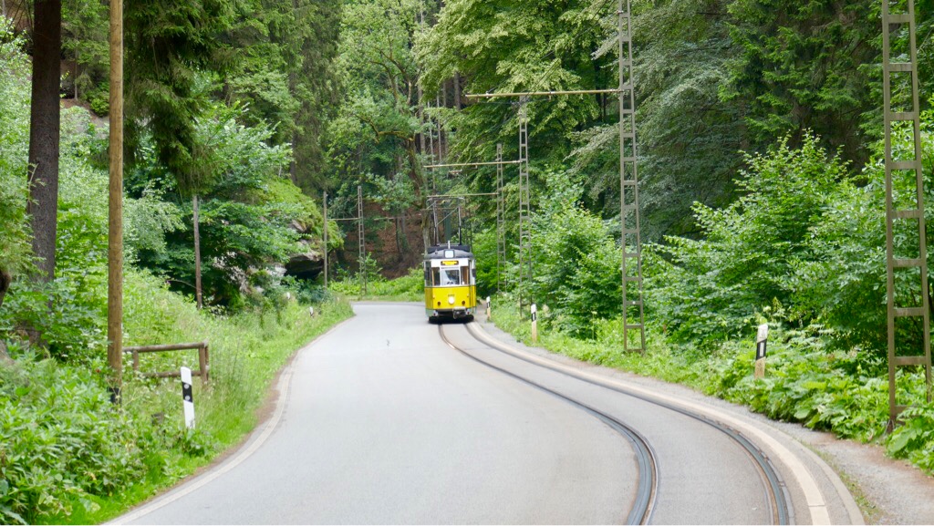 Seit 1889 verbindet die Kirnitzschtalbahn Bad Schandau mit dem Lichterhainer Wasserfall, der ist zwar nicht sehr beeindruckend, aber das Tal eignet sich wunderbar zum Wandern.