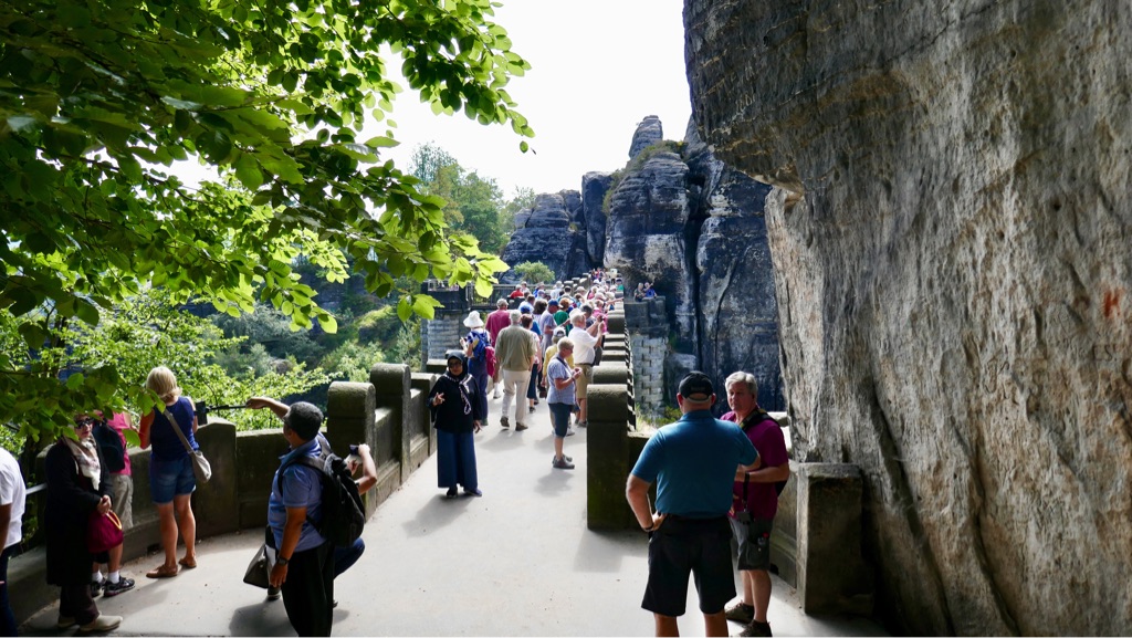 Zum Glück haben wir schon am ersten Tag bei schönem Wetter die Bastei besucht, der Ausblick von dort auf das Elbtal ist überwältigend.