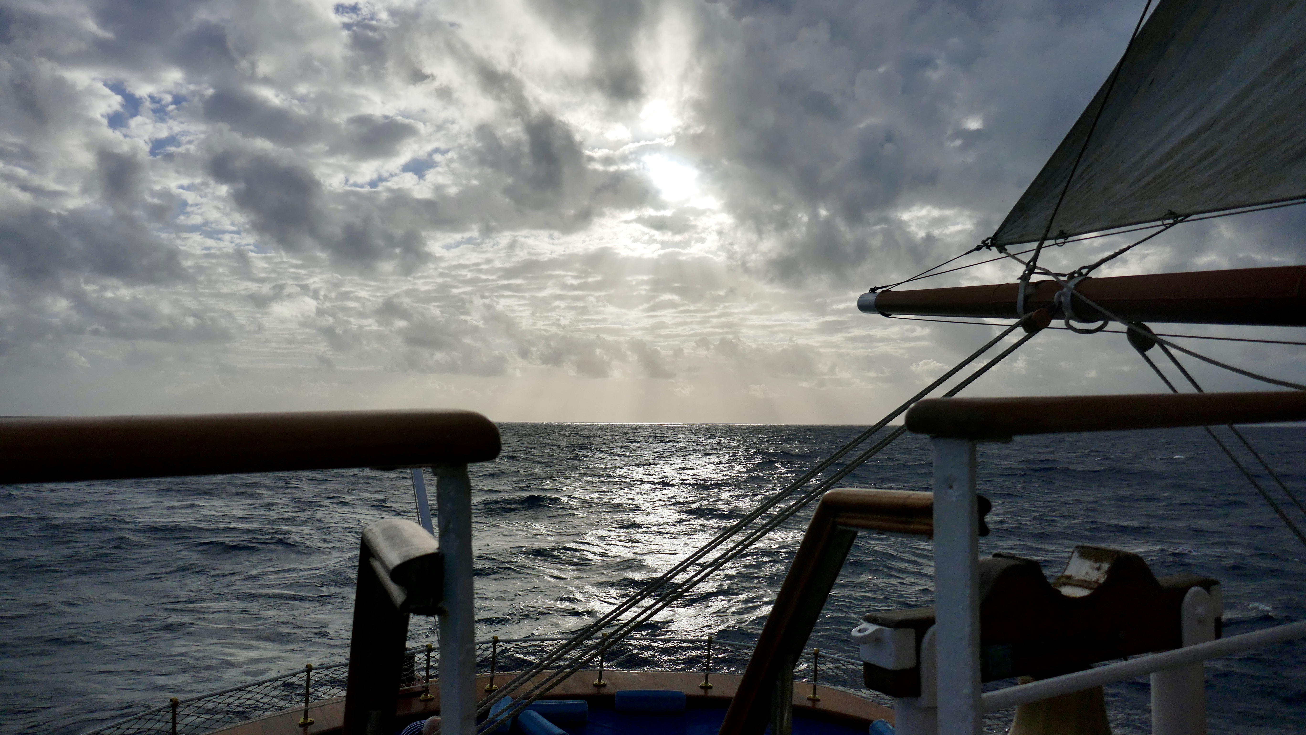Die ersten paar Tage war die See ein wenig unruhig und jetzt weiss ich aus eigener Erfahrung wie es ist, seekrank zu sein 🤢🤢🤢🤢. Dabei waren die Wellen gar nicht so hoch. Aber ausser dieser kleiner Unpässlichkeit verlief die ganze Überfahrt äusserst angenehm. Mit nur 45 Passagieren war die Sea Cloud noch lange nicht ausgebucht und ruhiges Eckchen liess sich immer finden.