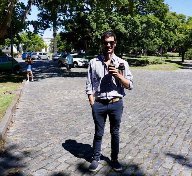 Mate ist das Nationalgetränk der Urugayos. Dieser bitter schmeckende Tee wird zwar auch in den umliegenden Ländern, vor allem in Argentinien, getrunken, aber nirgends ist er so allgegenwärtig wie in Uruguay. Auf der Strasse, im Bus, am Strand, einzeln oder in Gruppen, überall tragen die Mate-Aficionados ihre Thermosflasche mit heißem Wasser unter den Arm eingeklemmten mit sich, in der Hand das Trinkgefäss mit Saugrohr… So wie bei uns das Handy