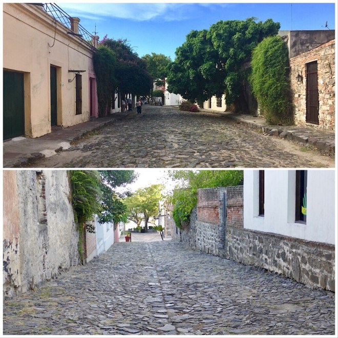 So wie in Colonia del Sacramento, der ältesten Stadt Uruguays. 1680 gegründet, wurde die Altstadt 1995 durch die UNESCO zum Weltkulturerbe ernannt. Von den Portugiesen gegründet, von den Spaniern erobert, von den Portugiesen wieder zurückerobert etc. zeigt die Altstadt klar die portugiesische neben der spanischen Bauweise. Flache Dächer = Spanien, Giebeldach = Portugal. Straßen mit Vertiefung in der Mitte = Portugal, Wasserablauf seitlich = Spanien. Zumindest haben wir das so verstanden.