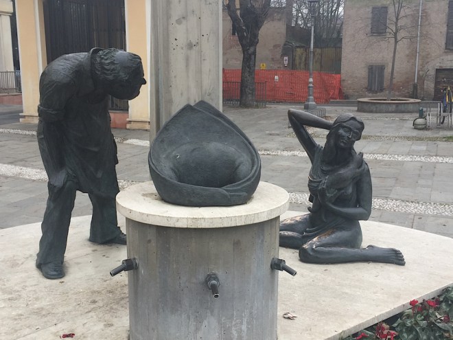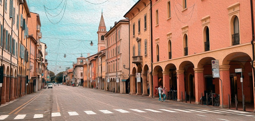 Castelfranco Emilia ist eine typische Kleinstadt der Emilia, flach wie eine Flunder – die höchste Erhebung ist die Autobahnüberführung – im Winter neblig-kalt und im Sommer einfach nur heiss. Was diese Stadt zwischen Modena und Bologna aber auszeichnet, ist die fast verbriefte Tatsache, dass hier die Tortellini erfunden wurden …und so nebenbei bemerkt, auch mein Geburtsort ist 😁