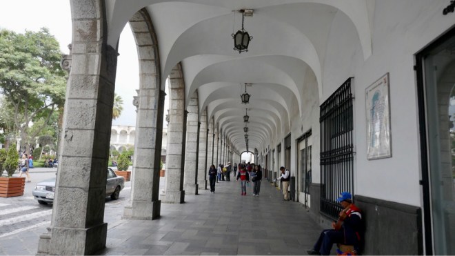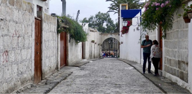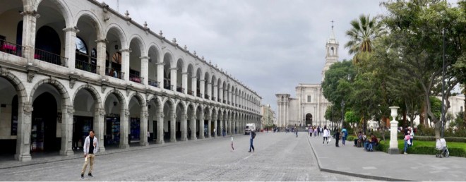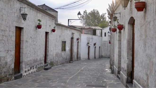 Den Übernamen „weisse Stadt“ verdankt Arequipa zum einen Sillar, einem hellen Vulkanstein aus dem viele Bauten im alten Stadtkern erbaut sind und zum anderen, weil früher das Stadtzentrum den Weißen vorbehalten war.