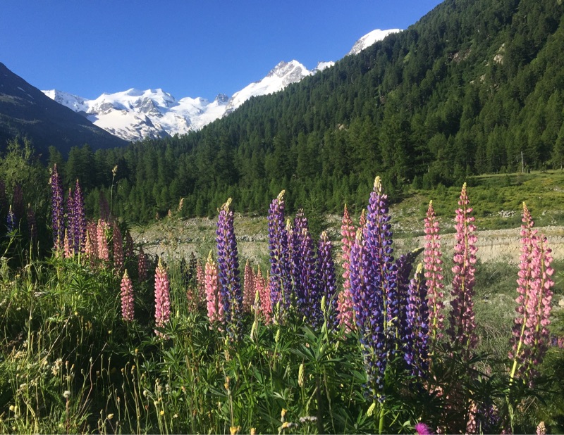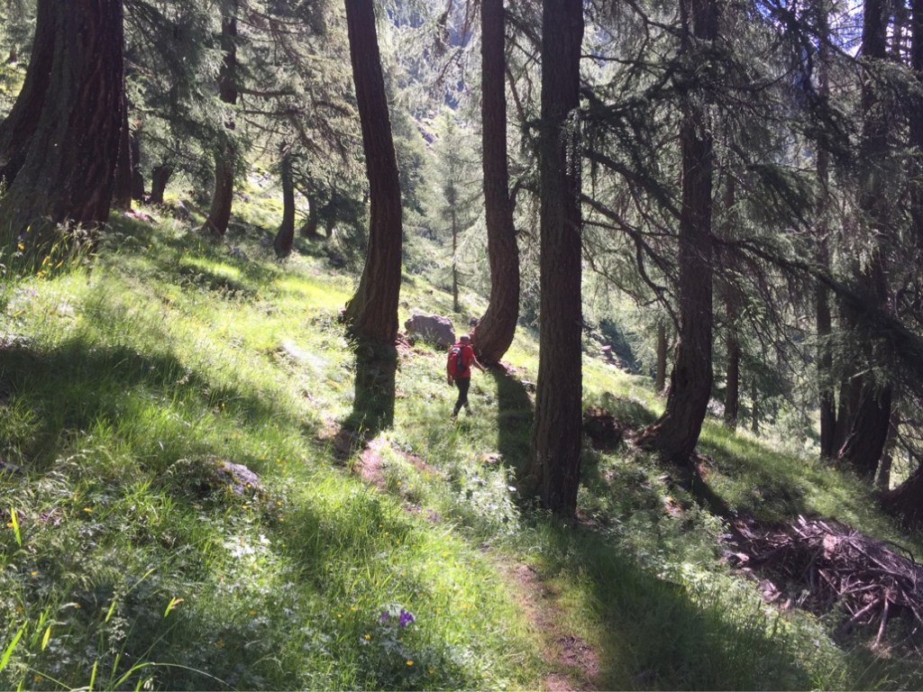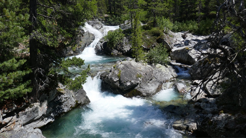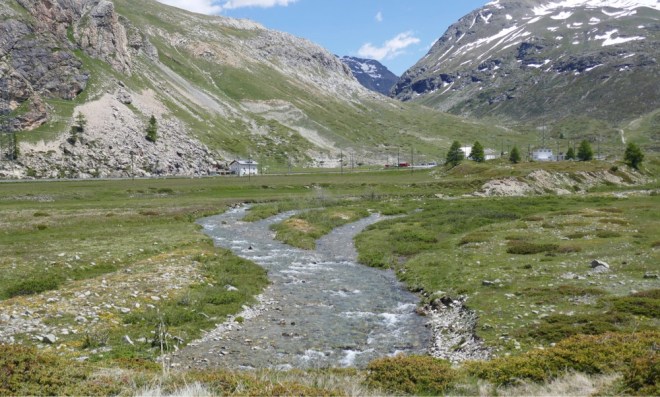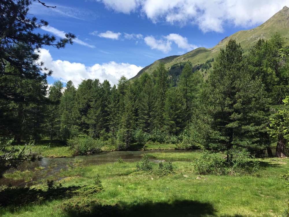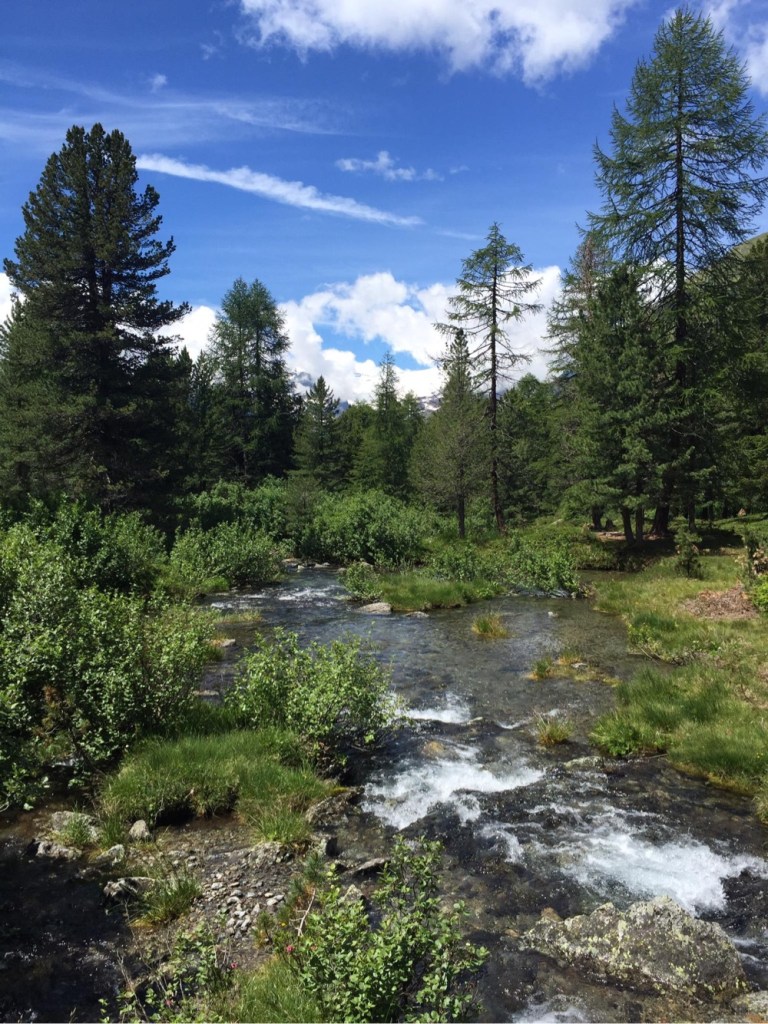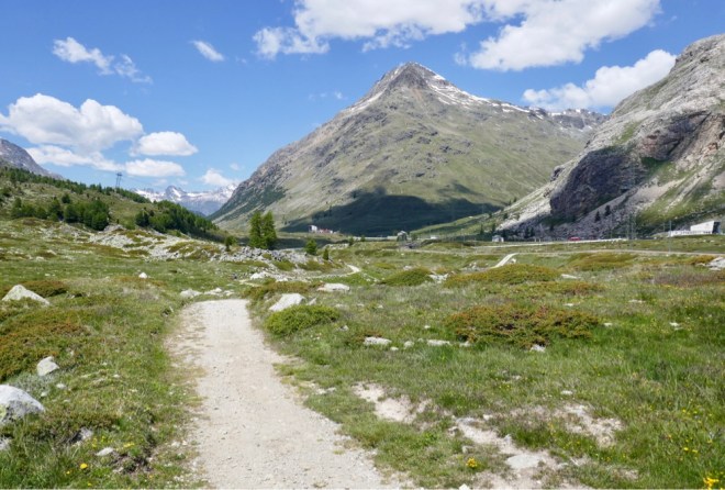 Schön ist auch die Wanderung vom Ospizio Bernina zum Bahnhof Morteratsch. Von der unwirtlichen, öden und doch so cberuhigenden Landschaft des Berninapasses zu den blühenden Wiesen, Föhren- und Arvenwäldern des Oberengadins.