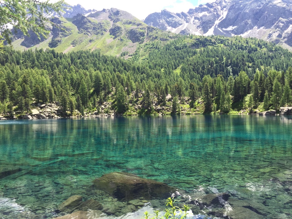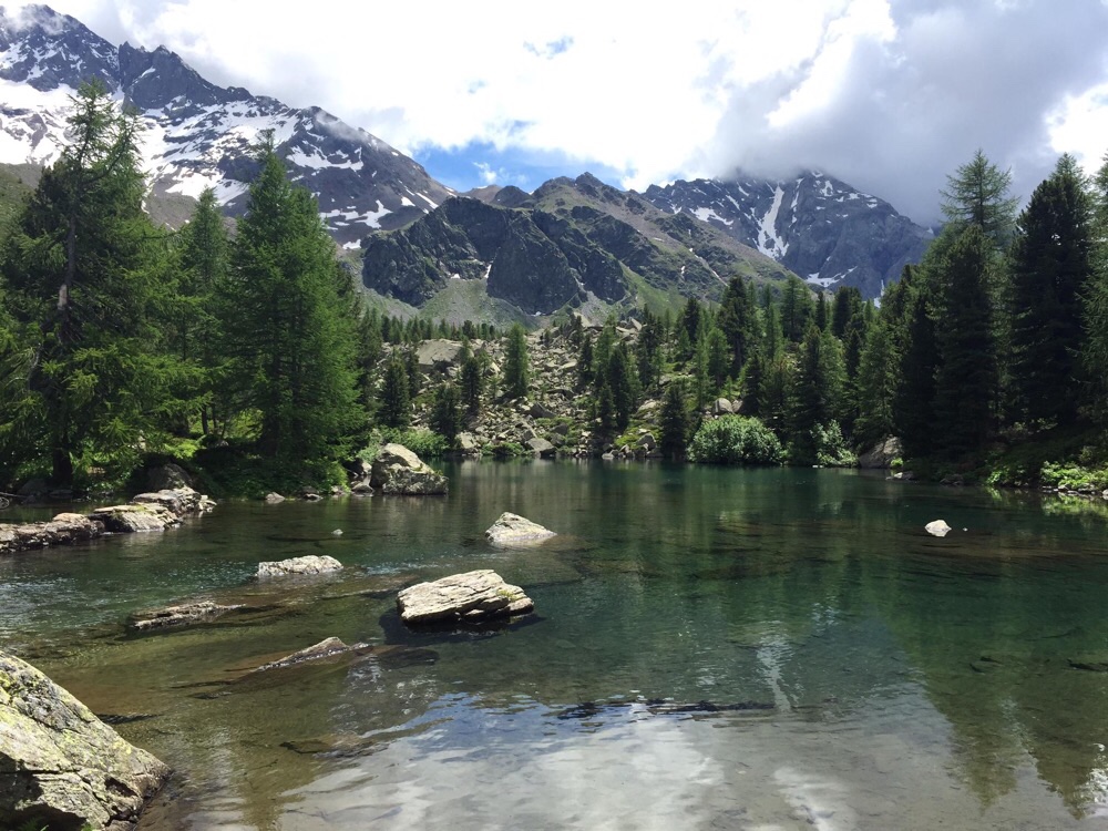 Einer der schönsten Bergseen im ganzen Alpenraum liegt im Val da Camp, ein wild-romantisches Seitental des Puschlavs. Zum Lagh da Saoseo führt eine abwechslungsreiche Bergwanderung, vorbei an unzähligen Wildbächen, Felsblöcken und Feuchtwiesen. Wir sind von der Postauto-Haltestelle La Rösa aus gewandert, ein selten benutzter Einstieg ins Val da Camp. Der Wanderweg zieht sich durch lichte Lärchenwälder und bietet anfangs immer wieder prächtige Ausblicke ins Puschlav.