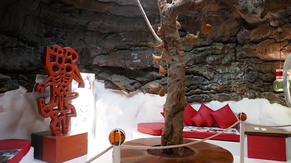 Ja, und da gibt es noch die Fundación César Manrique, sein ehemaliges Wohnhaus, das noch von ihm zum Museum umgestaltet wurde. Das Haus steht auf einem von Lavaströmen bedeckten Grundstück und ist auf fünf Lavablasen errichtet. Diese Höhlen sind geschickt zu Partyräumen, Bar, sogar einem Pool mit Wasserfall gestaltet worden. Im oberen Stock befindet sich heute das eigentliche Museum mit Skulpturen und Bildern.