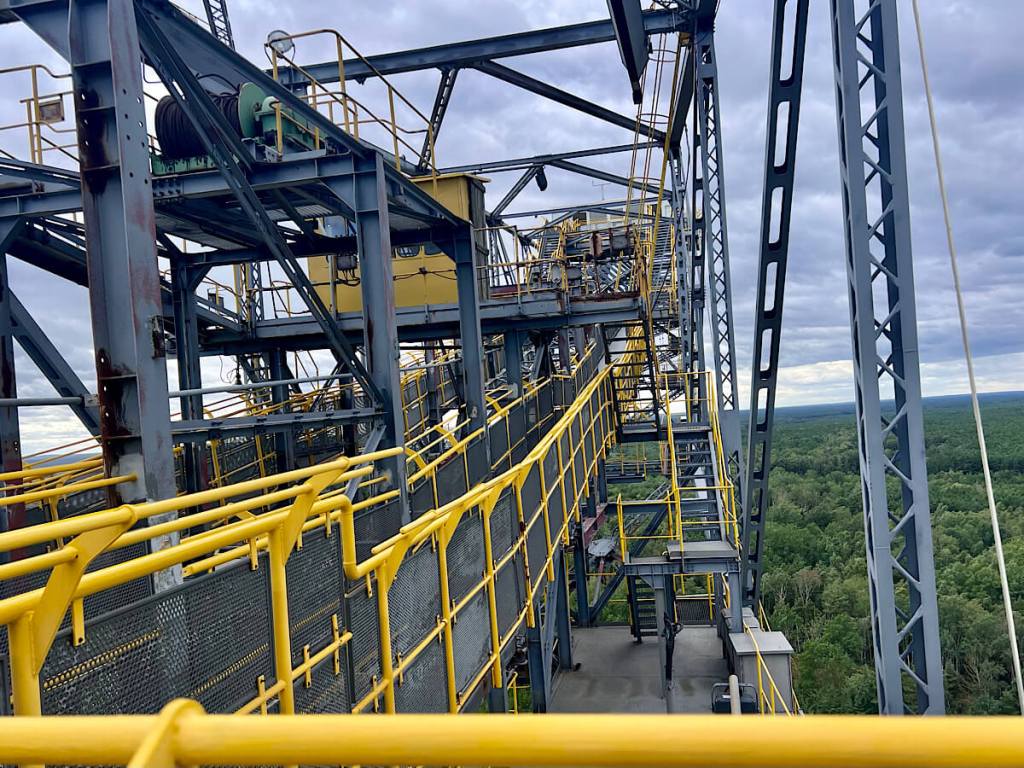 In der Lausitz bei Lichterfeld steht das Besucherbergwerk F60 mit dem „liegenden Eiffelturm“. Die Förderbrücke F60 ist ein Gigant der Technik: 502 Meter lang, 204 Meter breit, 80 Meter hoch und 11.000 Tonnen schwer.