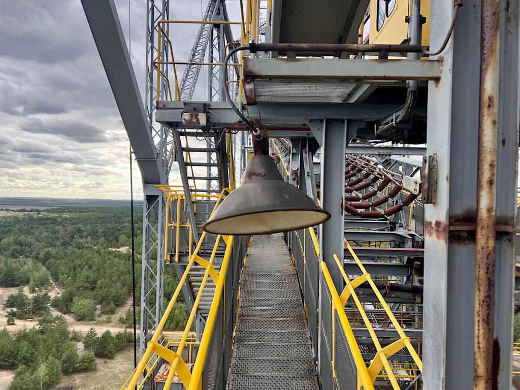 Wir haben am folgenden Tag den aktiven Braunkohletagebau Welzow-Süd besucht. Hier steht eine der vier verbleibenden F60 Förderbrücken noch im Einsatz. Aber dazu später