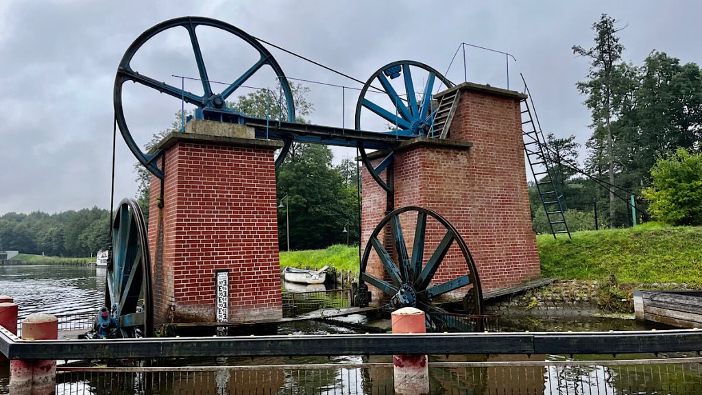 Wir sind nicht die ganze Strecke gefahren sondern nur den interessanten Teil von Buczyniec nach Jelonki. In etwas mehr als zwei Stunden haben wir vier Schleusen mit einen Höhenunterschied von 86 m überwunden.