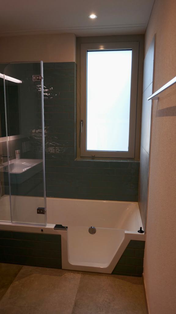 Kein Gästebad und auch kein Doppellavabo, aber das haben wir auch im WoMo und in den meisten Airbnb Unterkünften nicht – und vermisst haben wir es nie. Nur die fehlende separate Dusche machte mir ein klein wenig Sorge. Aber Dank dem sehr entgegenkommenden Bauherrn wurde in unserer Wohnung eine Badewanne mit Türe eingebaut, so bleibt uns das mit den Jahren immer mühsamere Hineinklettern in die Wanne erspart.