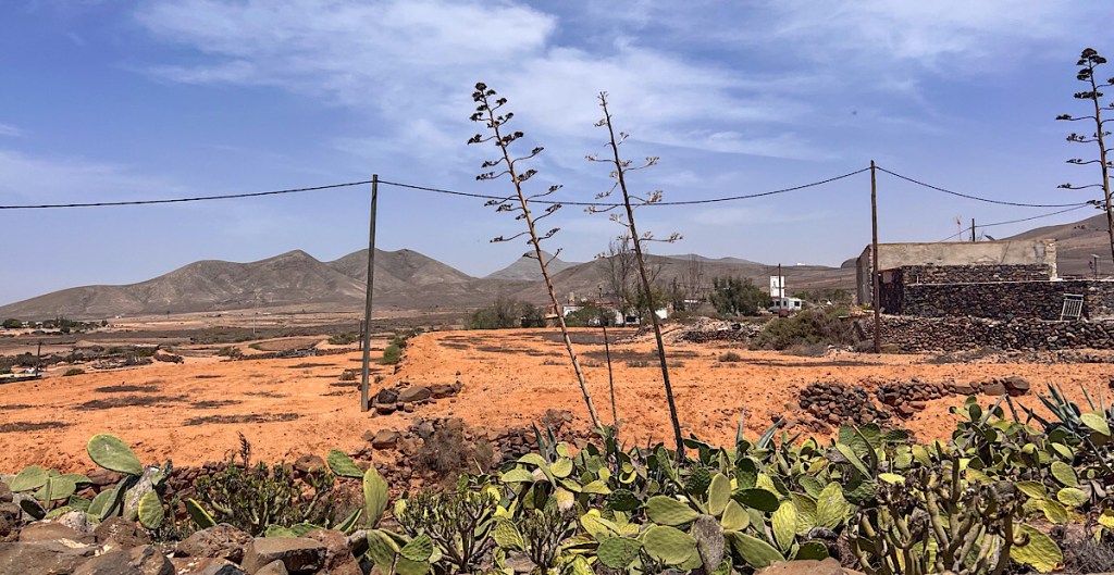 Der Flug von Zürich nach Lanzarote mit Edelweiss Air verlief ohne Zwischenfall, doch einmal mehr wurde der Flugplan kurzfristig geändert. Anstatt „erst“ um 8 h zu fliegen wurde die Abflugzeit auf 6 h morgens vorverlegt. Solche kurzfristigen Flugplanänderungen scheinen bei der Edelweiss Air zur Tagesordnung zu gehören, ähnliches ist uns schon mit dem Flug nach Tromsø widerfahren. Aber solch frühe Flüge haben auch ihre Vorteile, Landung in Lanzarote um 9.25 h, Übernahme Mietauto 10 h und Fähre nach Fuerteventura um 11 h. Und bereits um 12 h konnten wir unser wunderschönes Bungalow in Lajares im Norden Fuerteventuras übernehmen. Obwohl wir nur ca. 10 Minuten vom nächsten Strand entfernt sind haben wir uns eine Unterkunft mit Pool gegönnt. Dieser unterliegt nicht den Gezeiten und ist angenehm warm, was man vom Atlantik zu dieser Jahreszeit noch nicht behaupten kann.