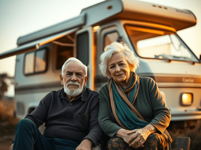 Mit KI erzeugtes Bild: Ehepaar mit Wohnmobil