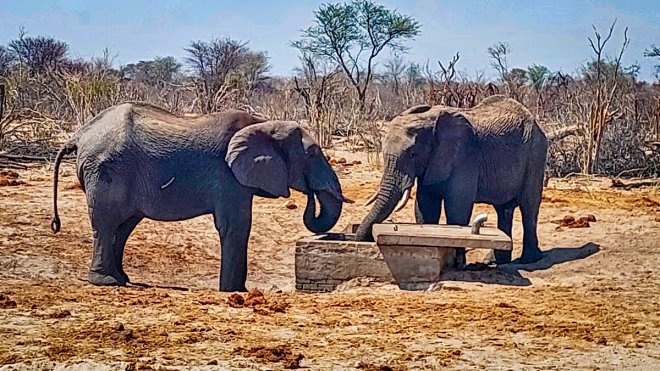 Und das es hier eine Überpopulation an Elefanten gibt, wissen wohl alle seit der botswanische Präsident 20’000 dieser Tiere nach Deutschland senden wollte. Sicher ist, dass es zur grossen Freude der Touristen einfach ist, Elefanten in freier Wildbahn zu bewundern. Entlang der Überlandstrassen werden Wasserleitungen für die Versorgung der Landbevölkerung geführt. Mit ihrem starken Rüssel ist es für Elefanten ein Leichtes, Reservoirdeckel dieser Leitungen aufzubrechen und das Wasser “abzupumpen”. Ein Riesenproblem für die Bewölkerung.