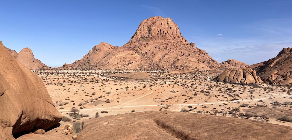 Die Spitzkoppe ist eines der meist fotografierten Motive Namibias. Der 700 m hohe Inselberg erhebt sich unvermittelt aus einer relativ flachen wüstenartigen Landschaft. Schon von weitem ist diese imposante Erhebung auszumachen. Wegen ihrer markanten Form bezeichnet man die Spitzkoppe auch als das Matterhorn Namibias.