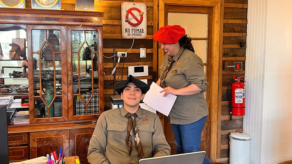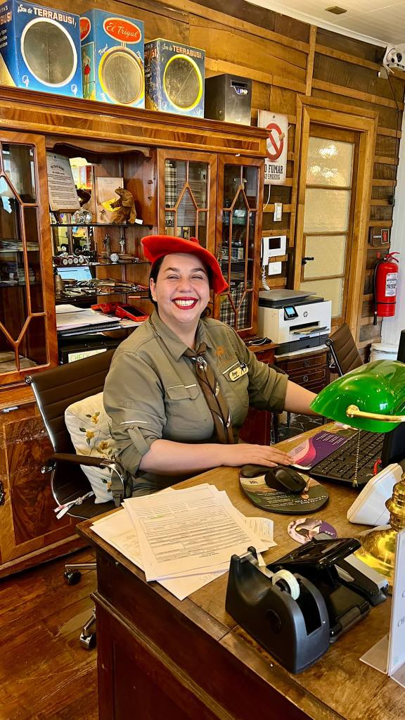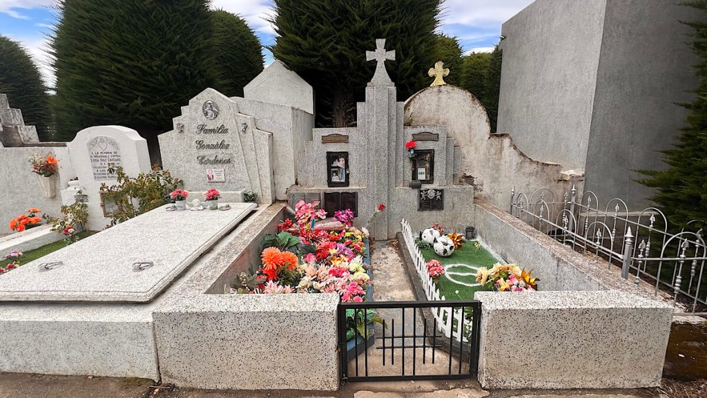 Nicht nur der Friedhof, auch die Farbe der typischen „Baqueano“ Mütze der Empfangsdame unseres Hotels ist gut gegen trübe Tage