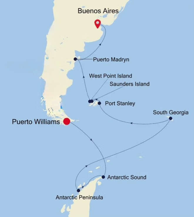 Beim dritten Anlauf hat es endlich geklappt, wir sind in der Antarktis unterwegs. Nachdem der 1. Versuch im März 2020 und der 2. im Januar 2022 wegen Covit abgebrochen wurde, haben wird es diesmal geschafft. Letzten Montag konnten wir in Puerto Williams an Bord der Silversea Endeavour gehen.