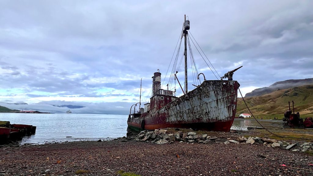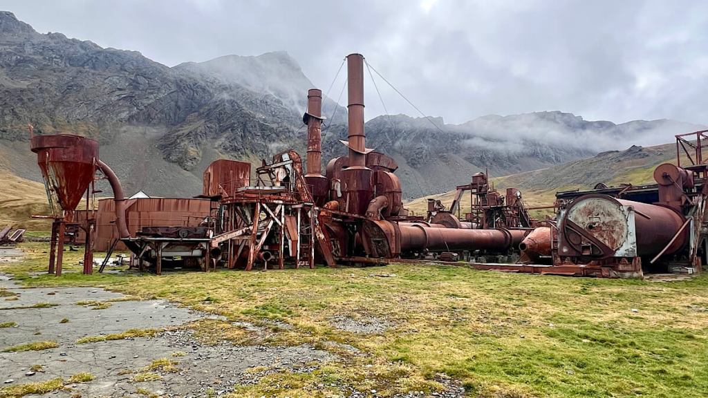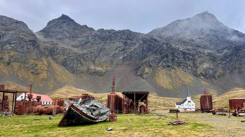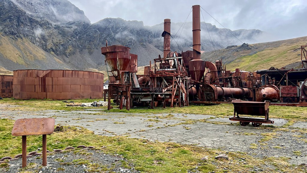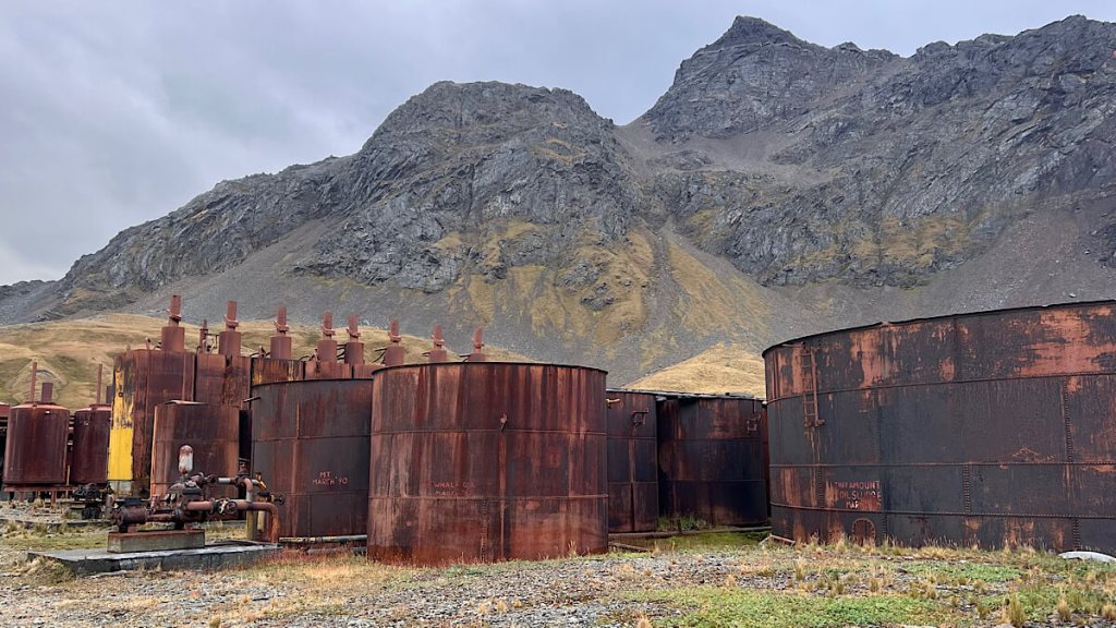 Die 1904 gegründete Walfangstation Grytviken ist heute ein Museum und Mahnmal. Bis Mitte der 1960 Jahre, bis hier der Walfang aufgegeben wurde, hat man alleine in dieser Station 175‘000 Tiere getötet.