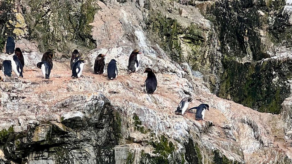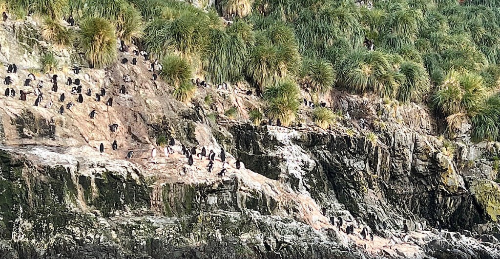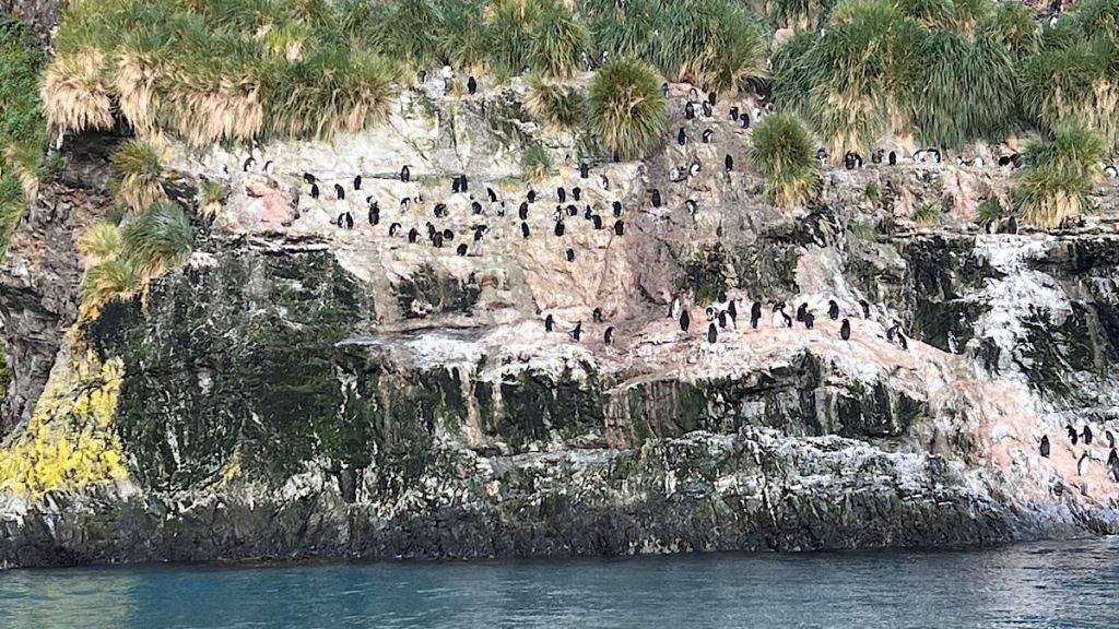 Die Macaroni Penguins – auf deutsch Goldschopfpinguin – konnten wir nur vom Zodiak aus bewundern. Diese Kolonie hält sich am liebsten in Felswänden auf, unglaublich wie die Tiere die steilsten Stellen der Wände überwinden!