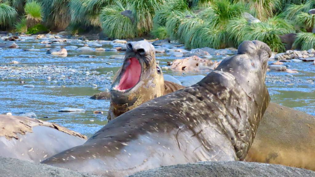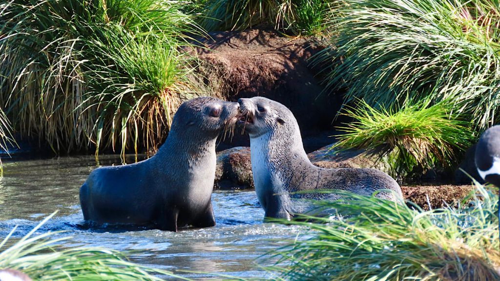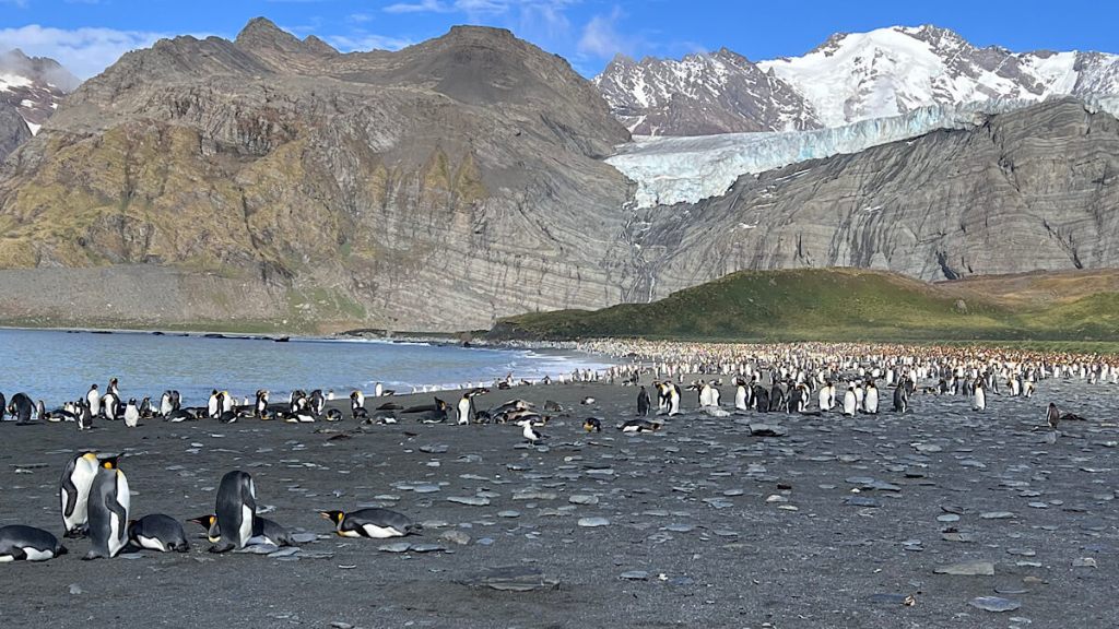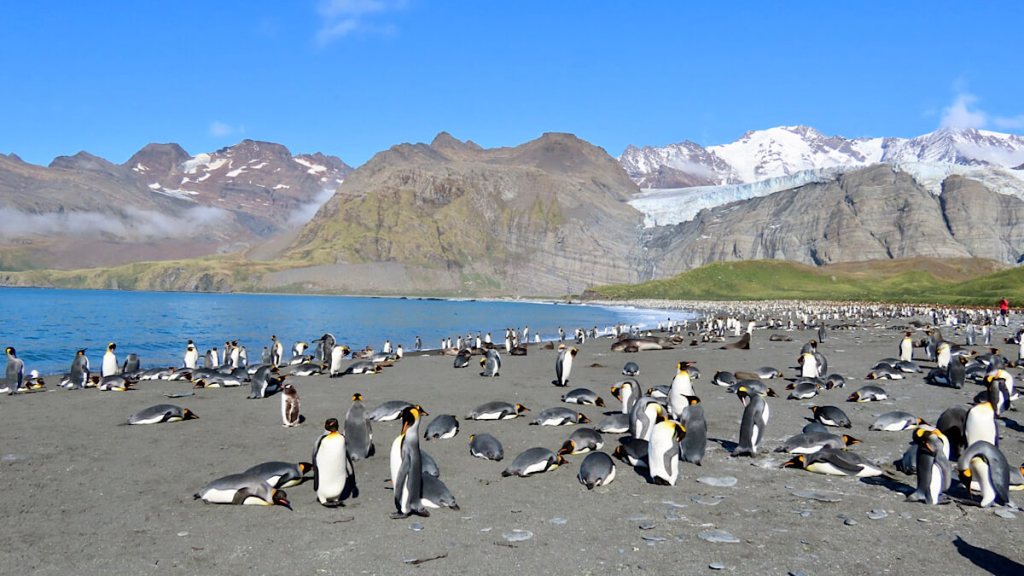 Das Gebiet zählt politisch zum britischen Überseegebiet „South Georgia and the South Sandwich Islands“ und liegt ca. 1400 km östlich der Küste Argentiniens. Die 160 km lange und knapp 30 km breite Insel ist eine der wichtigsten Brutgebiete von Robben, See-Elefanten und Pinguinen. Alleine die Königspinguine werden auf 400‘000 Tiere geschätzt! Und dann heisst es immer, bitte unbedingt mindestens 5 m Abstand zu den Tieren halten! Gar nicht so einfach, die Pinguine und auch die Robben kennen keine Angst vor Menschen und sind auch äusserst neugierig.