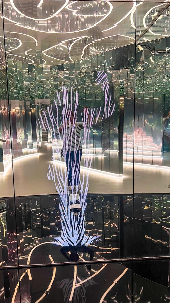 Die Ausstellung „Superblue“ ist eine moderne Kunstgalerie mit Lichtkunst, digitalen Installationen und Spiegellabyrinth. Für diese mussten wir ein paar Kilometer mehr unter die Füsse nehmen, es hat sich gelohnt.
