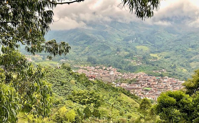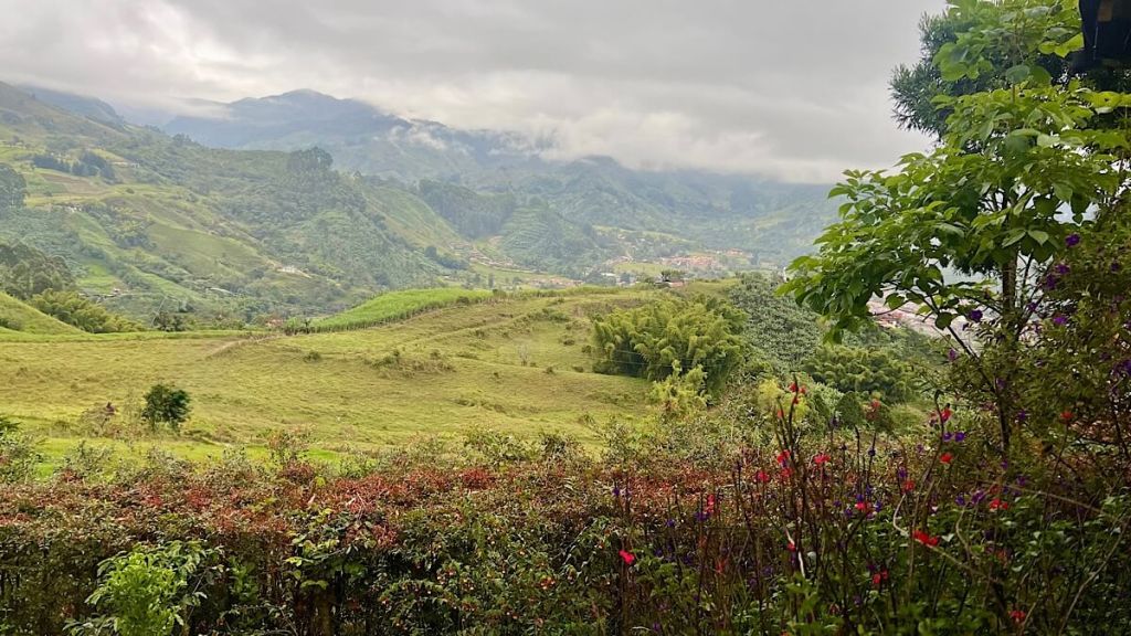 Jardín ist etwa 200 km von Guatape entfernt. Für diese 200 km haben wir dank Baustellen, Verkehr, Schlaglöchern und der kurvenreichen Strasse etwas über 6 Stunden gebraucht. Die Fahrt war wirklich sehr unangenehm, dafür die Lodge mit Sicht auf Jardín und die umliegende Bergwelt umwerfend.