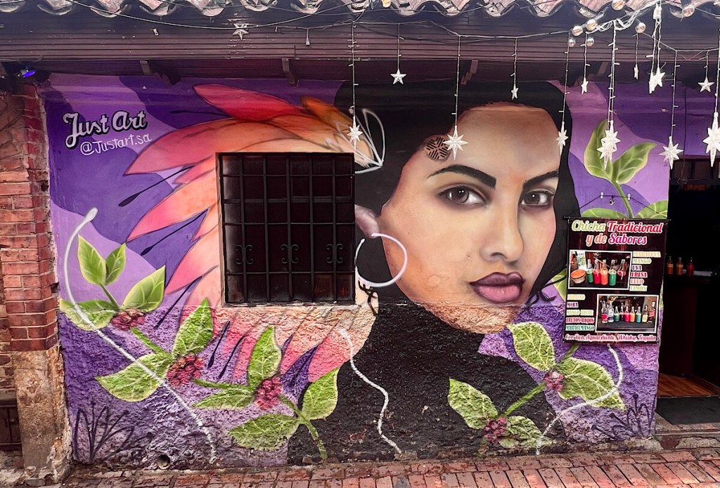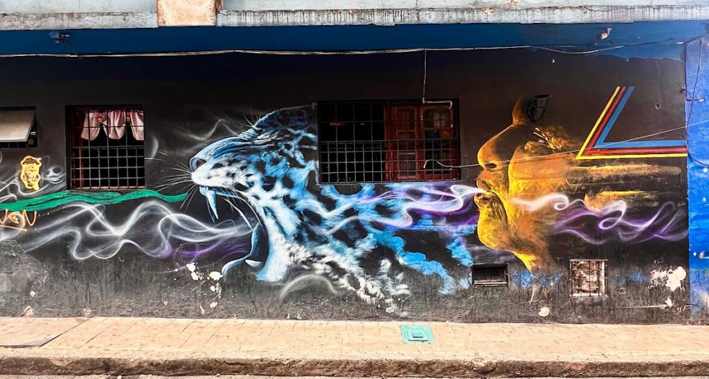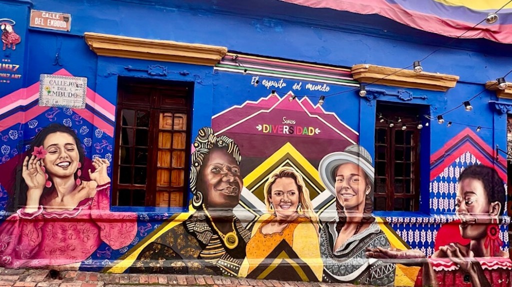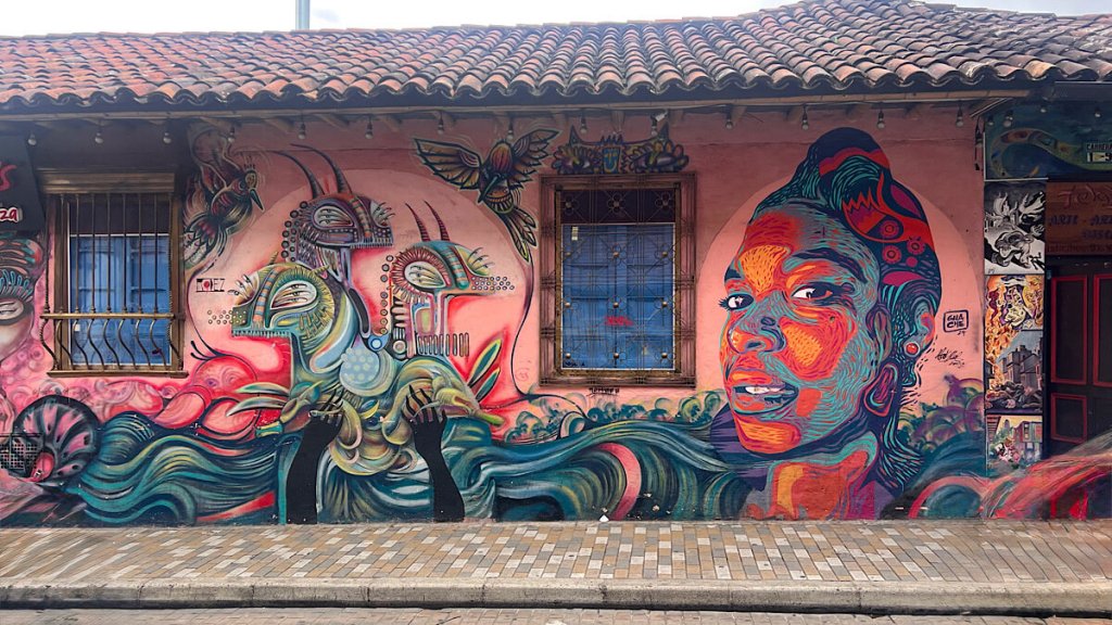 Die Vielfalt von Bogotás Strassenkunst ist unbeschreiblich. Schon auf der Fahrt vom Flughafen in die Stadt trifft man auf unzählige Werke. Ganze Häuserfassaden sind bunt bemalt, Streetart soweit das Auge reicht. Bogotá gilt heute als eines der Streetart-Mekkas der Welt.