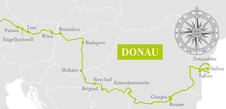 Rund 2850 km lang ist die Donau, 2200 davon haben wir von Engelhartszell bis zum Donaudelta mit der A-Rosa befahren, gemächlich sind wir an acht Ländern vorbeigezogen und haben 13 Schleusen passiert. Die ersten zwei fand ich noch spannend… Peter natürlich alle! Mit der Rückfahrt macht dies 26 Schleusen! Wir haben einige Städte besucht und einen Ausflug ins Delta unternommen, aber das Schönste war einfach das ruhige Dahingleiten auf dem Fluss. Vorallem die Zeit am frühen Morgen, wenn sich die Nebelschwaden über dem Wasser auflösen und die Sonne sich langsam bemerkbar macht, diese Stimmung hat mich tief beeindruckt. Erstaunlicherweise waren immer nur sehr wenige Passagiere frühmorgens an Deck, von seniler Bettflucht konnte da keine Rede sein.