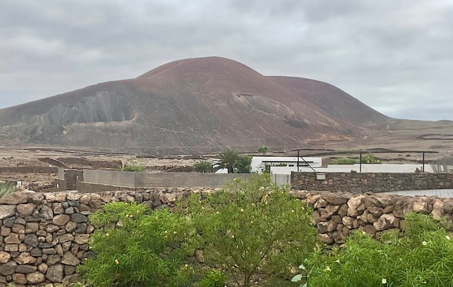 Heute ist der Himmel bedeckt, ideal für die kurze Wanderung zum Calderón Hondo, dem Krater eines erloschenen Vulkans. Der gut markierte, schattenlose Weg, der unweit von unserer Unterkunft startet, führt über Geröll und Lavafelder eigentlich recht gemütlich zum Krater hinauf.